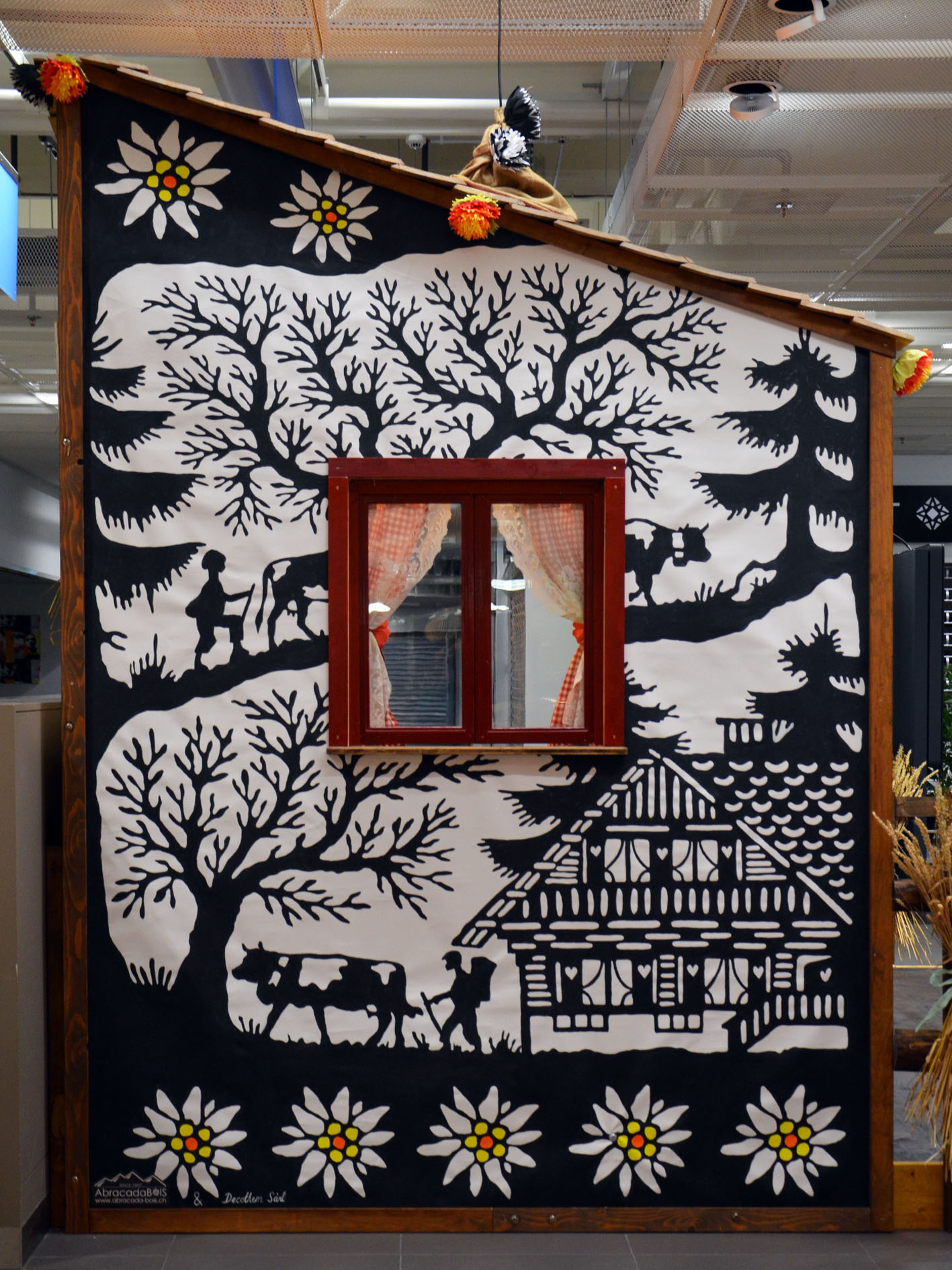Créations emblématiques : Réalisation de sujets symboliques, comme notre vache géante "Bénichonne", peinte à la main pour devenir l'élément central de votre décoration.